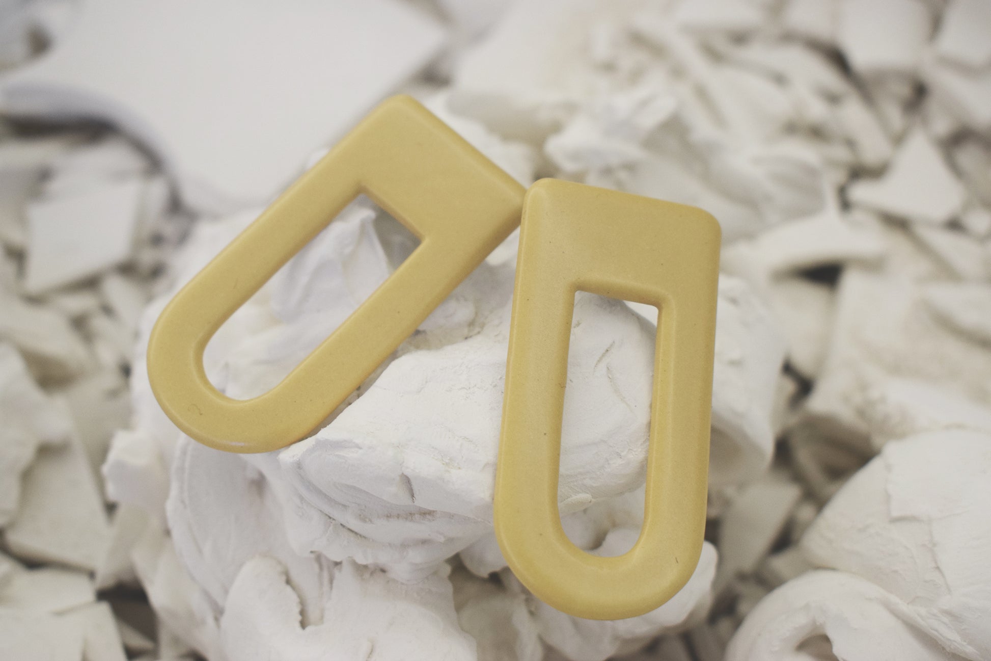 - Porcelain earrings with minimal and geometric form. Each piece is handmade and unique, fired two times in a ceramic kiln. The earrings are very lightweight and comfortable.